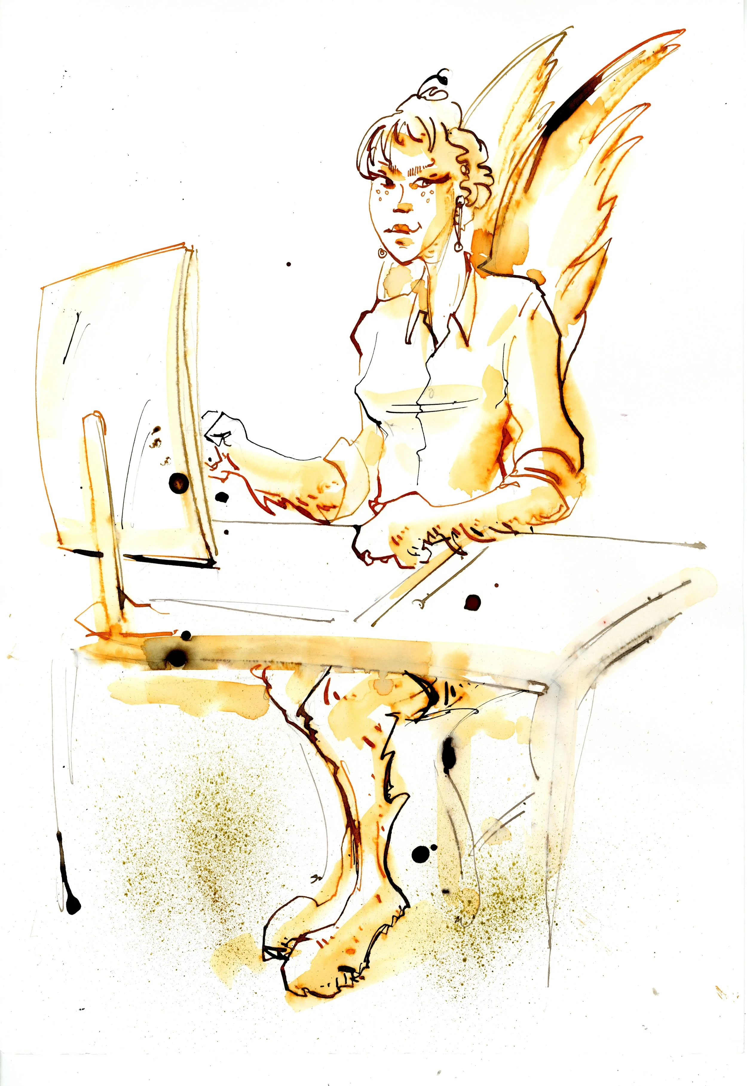 Claire Deville est danseuse. Mais pas seulement. Réunies par un journaliste de Libé, lequel a mis en parallèle le premier livre primé de Claire, “Les poupées sauvages” et mes dessins de tango, nous n’avons cessé de nous suivre entre la Belgique et la France, avec le tango argentin entre nous.